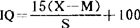 心理学术语。 智力商数,简称智商。〔英语Intclligencc Quotient,缩简为1Q〕。 说明人的智力所达到的年龄水平。 智力年龄或叫智龄(MentalAge,缩简为MA),是指智力所达到的年龄水平。实足年龄或实龄(Chronological Age,缩简为CA),是指测验时的实足年龄。进行智商测定的公式是: 100当智龄和实龄相等时,IQ=100,说明智力发育达到了该年龄阶段应该达到的智力水平。 属于正常范畴。当智龄大于实龄时IQ>100,说明智力水平较高。 当智龄小于实龄时IQ<100,说明智力水平偏低。用上述公式求得的智商称为比率智商。 但它不能应用于实龄为16岁以上的成年人,故有很大局限性。韦克斯勒所用的智商叫离差智商。 他以IQ的均值为100,标准差为15。公式是: ,X为某人实得的分数,M为某人所在年龄组的平均分数,S为该年龄组分数的标准差。 实际上就是一般教育与心理统计常用的标准分数。《报刊文摘》1987.10.20《“智商”受到挑战》:“实验组的学生是智商高的、对比组的学生是智商低的。 ”姜滇《市长夫人》:“但居漫莎是一个智商高,可塑性强的女孩子。”《报刊文摘》1985.2.26《四岁津津智力超常,武汉大学破格录取》:“近4岁半智力处于超常飞速发展中,能背几十篇古诗文……能解某些初中一、二年级以上的数学难题,知识面广,智商测定为一百四十以上,超过11岁智力年龄组。”涵逸《中国的“小皇帝”》:“对于为他人著想等等,他们很可能是一笑置之的,他们聪明、好学,有著很高的智商,但,同时也可能是极端的利己主义者。” |