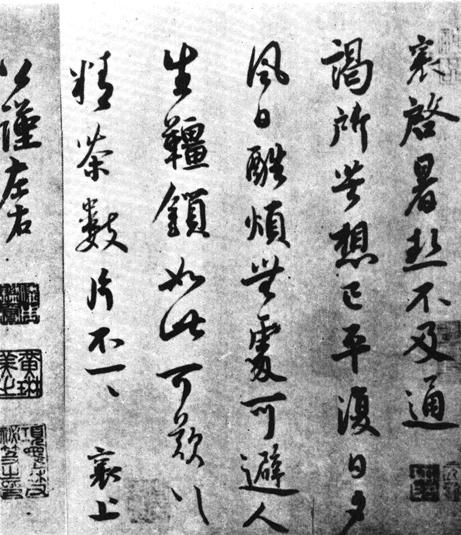 【简介】: 宋·蔡襄书。纸本。行书。尺牍一则。凡九行,每行字数不一,共六十八字。23×29.1cm。爲宋四家墨宝册之一。台北故宫博物院藏。《墨缘滙观》、《书画滙考》、《石渠宝笈续编》著录。刊于台湾《故宫历代法书全集》(十一),载于台湾《故宫书画录》卷三。 【赏析】: 汪砢玉在《珊瑚网》谓:“书法之变至宋极矣,然君谟(蔡襄》尙有晋唐余意,苏、黄及米始大变也。”可见,在苏、黄、米、蔡四家中,唯有蔡襄最守家规,他是属于王羲之平正秀逸一路的正统派继承人。  蔡襄工书,被推爲宋代第一。他善写多种书体,而尤以行草爲最胜。蔡襄《致公谨尺牍》寥寥数语,仅致问候,因信手写来,无意求工,反极其上。故黄山谷说:“君谟眞行简札甚秀丽能入永兴(虞世南)之室”。是很有见地的。《宣和书谱》也推崇他“眞行简札今爲第一”。 此札基调以二王爲主,秀妍恬淡,有晋人风韵。但若再加细看,如第一行的“及、通”二字,似乎透露出颜眞卿的踪迹,这说明他书学二王以外还兼及颜鲁公。此作写得较工,字字独立,仅有几处偶相引带,如“风日”、“生缰”、“如此”等字,连笔亦极爲守法,“虽细如髮丝亦圆。” 信后三行添加语,虽然是遗忘了的补充,却显得随意洒脱,疏密悬殊,似乎比正文更觉精彩。如“几”字的密,“卖”字的疏,均到了自然天成、无一不妙的境地。 |