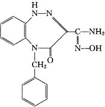 C16H15N5O2=309.33 CAS-35710-57-7 4,5-二氢-N-羟-4-氧代-5-(苯基甲基)-1H-1,2,5-苯并三氮杂 3-羧亚氨基酰胺。 4,5-Dihydro-N-hydroxy-4-oxo-5-(phenylmethyl)-1H-1,2,5-benzotriazepine-3-carboximidamide. 5-苄基-4,5-二氢-4-氧代-1H-1,2,5-苯并三氮杂 -3-羧酰胺肟。 5-Benzyl-4,5-dihydro-4-oxo-1H-1,2,5-benzotriazepine-3-carboxamidoxime. 抗抑郁药。 Trizoxime. INN,DCF,USAN.  |