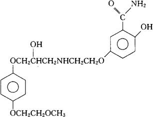 C21H28N2O7=420.46 CAS-7681-98-1 1-[2-(3-氨基甲酰-4-羟基苯氧)乙氨基]-3-[4-(2-甲氧基乙氧)苯氧]-2-丙醇。 1-[2-(3-Carbamoyl-4-hydroxyphenoxy)ethylamino]-3-[4-(2-methoxy-ethoxy)phenoxy]-2-propanol. (±)-5-[2-[[2-羟-3-[对-(2-甲氧基乙氧)苯氧]丙基]氨基]乙氧]水杨酰胺。 (±)-5-[2-[[2-Hydroxy-3-[p-(2-methoxyethoxy)phenoxy]propyl]amino]ethoxy]salicylamide. β-受体阻滞药,抗心律不齐药,抗高血压药。 曲格费洛。 Trigevolol. INN,USAN.  |