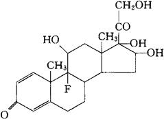C21H27FO6=394.44 CAS-124-94-7 9-氟-11β,16α,17,21-四羟孕甾-1,4-二烯-3,20-二酮。 9-Fluoro-11β,16α,17,21-tetrahydroxypregna-1,4-diene-3,20-dione. 皮质激素类药,消炎药。 去炎松,特安皮质醇(台),氟羟氢化泼尼松,氟羟强的松龙,去炎松,氟羧泼尼松龙,氟羟去氢氢化可的松。 Triamcinolone,Kenacort,Aristocort,SK-Triamcinolone,Lederspan,Fluoxiprednisolonl. 去炎松注射液。 INN,BAN,BP,DCF,DCIT,JP,NF,NFN,USAN,MI.  |