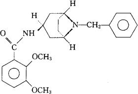 释义 | 曲帕必利 C23H28N2O3=380.49 CAS-76352-13-1 N-(8-苄基-1αH,5αH-去甲莨菪烷-3β-基)-邻-藜芦酰胺。 N-(8-Benzyl-1αH,5αH-nortropan-3β-yl)-o-veratramide. 2,3-二甲氧-N-[8-(苯基甲基)-8-氮杂双环[3.2.1]辛-3-基]苯甲酰胺。 2,3-Dimethoxy-N-[8-(phenylmethyl)-8-azabicyclo[3.2.1]oct-3-yl]benzamide. 抗精神病药,安定药。 Tropaprid,MD 790501. INN,USAN. |