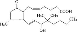 C23H38O4=383.55 CAS-69900-72-7 (5顺,11α,13E,15R)-15-羟-11,16,16-三甲基-9-氧代-前列腺-5,13-二烯-1-酸。 Prosta-5,13-dien-1-oci acid,15-hydroxy-11,16,16-trimethyl-9-oxo-,(5Z,11α,13E,15R)-1. (Z)-7-[(1R,2R,3R)-2-[(E)-(3R)-3-羟-4,4-二甲基-1-辛烯基]-3-甲基-4-氧代环戊基]-5-庚烯酸。 (Z)-7-[(1R,2R,3R)-2-[(E)-(3R)-3-Hydroxy-4,4-dimethyl-1-octenyl]-3-methyl-4-oxocyclopentyl]-5-heptenoic acid. 前列腺素类药,抗胃分泌药。 Trimoprostil,Ul pax,RO 21-6937/000. INN,USAN.  |