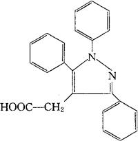 释义 | 曲非唑酸 C23H18N2O2=354.41 CAS-32710-91-1 1,3,5-三苯基吡唑-4-醋酸。 1,3,5-Triphenylpyrazole-4-acetic acid. 消炎镇痛药,解热药。 曲唑来克。 Trifezolac. INN,USAN. |