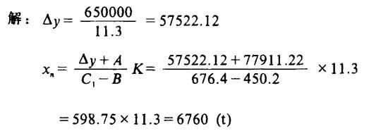 释义 | 最低年产量的分析计算 式中 xn——最低年产量(t) △y——月平均利润(元) K——年生产月数 其它同上 [例3]计算在上述销售价格下,年利65万元,年生产11.3月,试确定最低年产量。 |