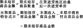 释义 | 最后进价法 商业企业结转批发商品销售成本的一种方法。 它以每种商品主要进货地区的最后一次进货单价作为期末结存商品单价,乘以期末结存商品数量,得出期末结存商品金额,然后倒挤已销商品进价成本。其计算公式为: 这种方法由于不需要计算结存商品的平均单价,也不必按照商品收入金额推算结存商品金额,简化了计算手续。但在商品最后一次进货单价与以前各次进货单价变化较大而其进货数量较少的情况下,采用最后进价法,计算结果往往与实际严重脱节。因此,这种方法主要适用于前后进价相差幅度不大的商品,对前后进价高低悬殊,进货数量又不均衡的商品,不宜采用此法。 |