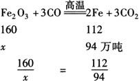 化学方程式所表达的都是纯净物发生化学变化时的相互关系;各化学式所规定的化学量反映的是纯净物之间的质量关系.当参与反应的物质含有杂质时,先要把含杂质物质的质量换算成纯净物质的质量,再用纯净物质的质量计算. 纯物质的质量=不纯物质的质量×纯度=不纯物质的质量×(1-所含杂质的质量分数)  例 某高炉年产生铁100万吨(设生铁中含铁94%)若生产过程中铁的损失不计,问需要含80%Fe2O3的赤铁矿石多少万吨? 解 100万吨生铁中含纯铁的质量是:100万吨×94%=94万吨 设:年产纯铁94万吨,需要Fe2O3的质量为x  解得x=134.3万吨. 所需含Fe2O380%的赤铁矿石的质量是  答:需要含Fe2O380%的赤铁矿石167.9万吨. |