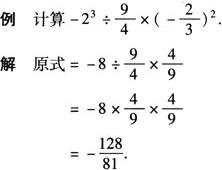 释义 | 有理数的混合运算法则 先算乘方,再算乘除,最后算加减.如果有括号,先算括号里面的. 注意 1.同级运算,按从左到右的顺序. 2.常出现一题多解的情况 [解析] 千万不要违背同级运算从左到右的顺序,而错误地先作9/4×4/9=1. |