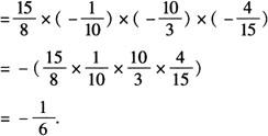 释义 | 有理数除法法则 除以一个数等于乘以它的倒数. 注意 1.0不可以作除数. 2.0除以任何一个不等于0的数都等于0. 3.运用除法法则,把除法转化成乘法运算,再用乘法法则计算. 例1 计算 解 原式 [解析] 乘除混合运算,先统一化为乘法来计算,不易出错. |