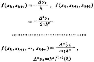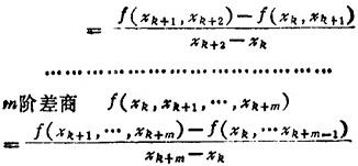 释义 | 有限差分与差商 设函数y=f(x)在结点x0<x1<…<xn(常取xk=x0+kh)处的值为y0,y1,…,yn,即f(xk)=yk(k=0,1,2。…n)。 15.2.1 有限差分 向前差分: 一阶向前差分 △yk=yk+1-yk 二阶向前差分 △2yk==△yk+1-△yk …………………………… m阶向前差分 △myk=△m-1yk+1-△m-1yk 向后差分: 一阶向后差分 二阶向后差分 ▽2yk=▽yk-▽yk-1 …………………………… m阶向后差分 ▽myk=▽m-1yk-▽m-1yk-1 中心差分: 一阶中心差分 二阶中心差分 δ2yk= ……………………………… m阶中心差分 δmyk= 或δmyk+ 三种差分间的关系:▽kyk=△ky0;δ2kyk=△2kyo;δ2k+1yk+ 15.2.2 差商(均差) 一阶差商 f(xk,xk+1)= 二阶差商 f(xk,xk+1,xk+2) 若f(x)在〔a,b〕上n次可微,x0,x1,…,xn是〔a、b〕内的(n+1)个不同点,则存在ξ(α<ξ<b)使得 对于等距结点,差分、差商和导数间存在如下关系: |