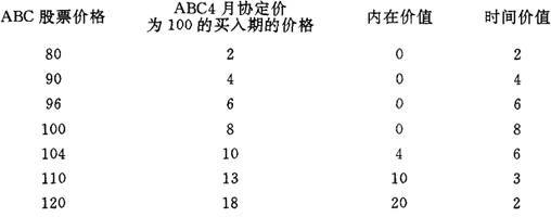 释义 | 期权的内在价值和时间价值 期权的内在价值为期权项下的金融商品市场价格与期权中的协定价格之差。 其计算公式为:(1)买入期权的内在价值=市场价格-协定价格;(2)卖出期权的内在价值=协定价格-市场价格。注意,当差额为负数或零时,表示该期权无内在价值,即内在价值为零。期权的时间价值即为期权的价格与其内在价值之差。一般而言,期权的时间价值在其所对应的金融商品的协定价格与市场价格相等时达到最小,随著市场价格远离协定价格,期间的时间价值也越来越小,例如,ABC公司的股票买入期权协定价格为100,则对于不同ABC股票的市场价格,其内在价值和时间下值如下表所示: |