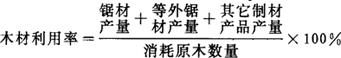 释义 | 木材利用率 指锯材产量、等外锯材产量和其它制材产品产量的总和占消耗的原木数量比重,用百分数表示。其计算公式为: 式中:“其它制材产品产量”应包括除等内外锯材产品以外的其它所有的制材产品,如0.49米以下的小规格材、灰条、瓦条、建筑板皮等。 |
