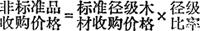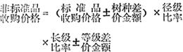 释义 | 木材收购价格质量差价 有4种:分别是树种差价、径级差价、长级差价和等级差价。 (1)树种差价。反映不同树种价格之间的差额,一般以差价金额表示。用树种差价计算非标准品收购价格的计算公式是: (2)径级差价。反映径级粗细不同的木材价格之间的差额。 一般以径级比率表示。用径级比例计算非标准径级木材收购价格的计算公式是: (3)长级差价。 反映长度不同的木材价格之间的差额。通常用长级比率表示。 用长级比率计算非标准长级木材收购价格的计算公式是: (4)等级差价反映不同等级的木材价格之间的差额。 木材收购价格一般分为三级,即一级、二级、三级。其中二级为标准级。等级差价直接用差价金额表示。 用等级差价计算非标准品收购价格的计算公式是: 有的木材,其树种、长级、径级和等级都是非标准品,这就需要综合各种差价,来计算其收购价格。综合各种差价计算非标准品木材收购价格的计算公式是: 木材收购价格是与木材生产者直接见面的价格,适用于南方集体林区的集体或个人造林生产的木材。合理的木材收购价格,有利于鼓励集体和个人植树造林的积极性,有利于经营企业的经济核算,有利于合理安排木材市场价格。 |