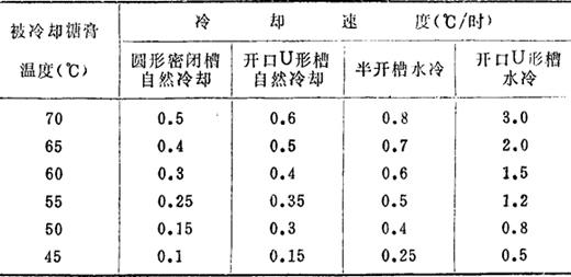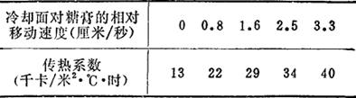 助晶机的传热系数同糖膏对冷却面的相对移动速度有关,如表6-37: