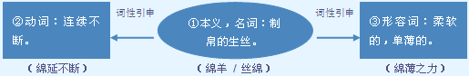 丝绵。常用作语素构成合成词。 ~绸|丝~。 柔软,绵延。常用作语素构成合成词。 ~延|~软|~羊。 【词语】 绵薄 绵绸 绵长 绵密 绵绵 绵软 绵羊