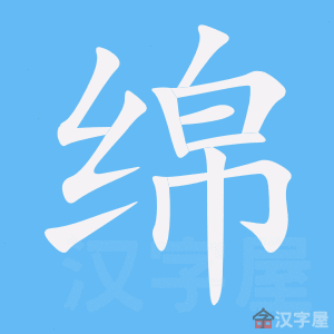 字源解说 绵,金文 = (帛,高级织品)+ (糸,丝),表示制帛的丝材。造字本义:制帛的生丝。篆文 承续金文字形。俗体楷书 调整正体楷书 的左右结构顺序。 附 文言版《説文解字》:緜,聯微也。从系,从帛。 附 白话版《说文解字》:绵,将微小的丝连续起来。字形采用“系、帛”会义。 引申线索