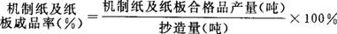 指机制纸及纸板合格品产量与抄造量之比,用百分比表示,反映机制纸及纸板质量的指标。