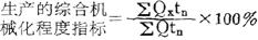 它既可从产品产量角度计算生产机械化程度指标,也可从劳动消耗角度计算劳动机械化程度指标。有一个工序和综合多工序两种计算方法。计算公式为: