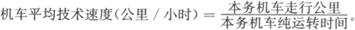 释义 | 机车平均技术速度 列车本务机车在区间内平均每小时走行的公里数。 其计算公式为: 上式按客运机车、货运机车分别计算。机车平均技术速度指标受机车自身的动力类型、结构、性能、机车保养质量、机车乘务员操作技术等因素的影响。 但也有机车自身以外的影响因素,如线路平纵断面状况、车辆构造、信号闭塞设备、列车重量、燃料质量等。 |