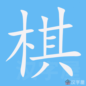 字源解说 其,既是声旁也是形旁,是“箕”的本字,表示竹制盛具。棋,甲骨文 = (木,小木块)+ (其,箕筐)+ (双手,抓持),造字本义:博弈玩具,在箕筐内投掷有不同记号的若干小木块,或手持盛有小木块的箕筐不断摇动,以小木块记号的组合结果定输赢。篆文 将甲骨文的 和 合写成“其” 。隶书 写成左右结构。 附 文言版《説文解字》: 棊,博棊。从木,其聲。 附 白话版《说文解字》: 棋,博奕玩具。字形采用“木”作边旁,“其”是声旁。 引申线索