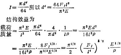释义 | 材料的刚度 在设计过程中,为了减轻零件质量,常选用高强度材料。然而,如考虑不周,则会产生刚度不足的后果。因为材料的弹性模量E值不受热处理强化等冶金因素的影响。在采用高强度材料时,零件截面可相应减小,这就导致截面惯性矩I的降低,有可能出现变形过大或弹性失稳而失效。图2.4-5是几种因弹性失稳而失效的示例。须知,E是材料刚度的标志,而I是设计刚度的标志,二者应予区分。如果由于其他有利因素而采用低E值的材料,则设计时必须增加设计刚度(增大I值),以抵销低刚度材料的不利影响。例如铝及铝合金的密度小、强度高、加工性优良,但E值低,因此,铝合金多数用于生产I值大的各种异型材。 表2.4-11列出若干种材料的弹性模量E值、密度ρ值以及某些种承载零件按刚度选材时的判据(考虑最小质量)。表中所列判据E1/2/ρ的值(即结构效益值)愈大,则质量愈小。如前所述,若须考虑最低材料费用时,则应以Pmρ/E1/2作为选材判据。 表2.4-11 材料的E值、ρ值及刚度选材判据 悬臂梁的挠度δ=Fι3/3EI。如果梁的横截面是方形,宽度为b,则刚度为 故对给定的刚度E/δ而言,当ρ/E1/2最小时,梁的质量最小。对于板、盘状件,当ρ/E1/3最小时,零件质量最小。 例2.4-2如图2.4-5(α)所示受压长杆,作为考虑其弹性失稳的选材过程如下: 依照欧拉(Euler)公式,发生侧弯的临界负载Fj=(π2EI)/l2,设长杆为圆形截面,其直径为d,则截面惯性矩为 所以选材的判据是E1/2/ρ |