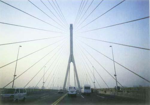 释义 | 杨浦大桥 杨浦大桥是黄浦江上第二座大桥,1993年10月通车,与南浦大桥南北呼应,是内环线高架连接浦东与浦西的过江枢纽,总长7654米,双塔双索叠合梁斜拉桥。主桥塔呈倒“Y”字形,高208米,邓小平题写的桥名镶嵌在主塔三角区。杨浦大桥离黄浦江水面48米,桥下可畅通万吨级以上船舶。大桥主桥左右侧建有2米宽的观光人行道,游客可以从地面搭乘观光电梯到达主桥面,观赏黄浦江两岸风光。 交通:公交线路81、85、870、522、574、571、592路,大桥三、四专线 电话:58854701 |