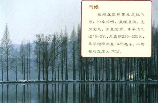 释义 | 杭州市内主要景点漫游 走进杭州,西湖已是呼之欲出了,但请朋友们暂且按捺游动的情怀,先听我慢慢道来。 杭州可游之处极为丰富,但游人匆匆而来往往不能尽览,尤其是西湖美景,四季皆具特色,更不能一览无余,为解除您的寻觅之苦,我特为您介绍一条三日游览计划,供参观之用,其他景点,可持此一书,作梦里神游。杭州就同桂林等许多地方一样,是散客的天堂,悠游岁月的人间仙境。 主要饭店 杭州黄龙饭店(四星级) 地址:曙光路 电话:0571-5154488 杭州友好饭店(三星级) 地址:平海路53号 电话:0571-7077883 杭州望湖宾馆(四星级) 地址:环城西路2号 电话:0571-7071942 杭州华侨饭店(三星级) 地址:湖滨路15号 电话:0571-7074401 五洲大酒店 地址:平海路新2号 电话:0571-7088088 香格里拉饭店 地址:北山路78号 电话:0571-7977951 白居易与杭州 白居易于唐长庆 二年(822),四十七岁时,以中书舍人出为杭州刺史,居三年,留下一湖清水,一道白堤,六井清泉,二百首诗,临走从天竺山取走两片石而已。 气候 杭州属亚热带季风性气候,四季分明,温暖湿润,光照充足,雨量充沛。年平均气温16—2℃,无霜期230-260天,年平均降雨量1435毫米,平均相对湿度为76%。 |