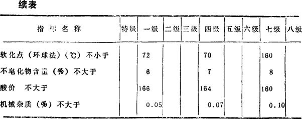 释义 | 松香 造纸工业用的松香是由松树采集的松脂,经过蒸馏去掉松节油后所得到的固体产物,其化学组成主要为同分异构树脂酸,通常用松香酸C19H29COOH来表示。 1.质量标准 表1-85 松香质量标准(LY204-63) 2.性质与用途 表1-86 松香的性质与用途 3.包装、贮存、运输 (1)可用木箱、铁桶或麻袋包装。木箱包装内衬80克/米2牛皮纸,每箱净重100公斤(也有50公斤或25公斤的)。铁桶每桶净重225~230公斤。 (2)应贮存在通风的库房或货棚中。远离火种或热源。不可与氧化剂共储混运。 |