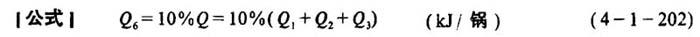 释义 | 松香锅熬胶过程中热损失Q″的计算 式中符号含义及单位均见下 1.冷凝水带走热量Q5 式中 D′——冷凝水量(kg/锅) i2——冷凝水的比能(kJ/kg) i1——周围环境温度下水的比能(kJ/kg) 2.管道损失热量Q6 3.散热损失Q7 |