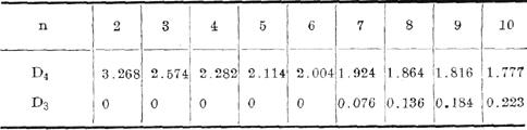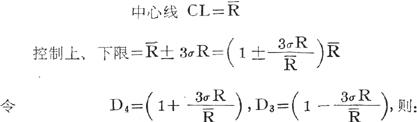 释义 | 极差控制图 简称“R控制图”。 指根据每组数据的极差的大小,以控制产品质量数据的离散程度,分析生产过程(或工序)的稳定性的一种产品质量控制图。通常它与单值控制图或算术平均数控制图互相配合,作为一组同时使用。 D3和D4数据根据样本容量(n)可查表取得。 |