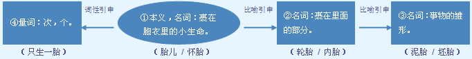 tāi ❶名人或哺乳动物母体内的幼体。胎儿|怀胎|胚胎 →❷量用于怀孕或生育的次数。头胎|第二胎|这只猫一胎下了五只小猫。 →❸名比喻事物的根源。祸生有胎 →❹名某些器物尚待加工的粗坯或内瓤。泥胎菩萨|铜胎|棉花胎 →❺名指怀着胎儿的子宫。娘胎|投胎 胎 2 tāi 名英语 tyre 音译。轮胎。车胎|内胎|外胎
