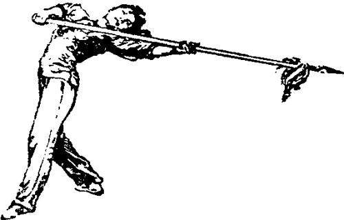 武术项目中以枪为器械的练习方法和技巧。 明戚继光《纪效新书》,程宗猷《耕余剩技·长江法选》,清吴殳《手臂录》均详细论述了枪的使用方法和技术。枪法以拦、拿、扎为主。 扎枪又有上平、中平、下平之分,以中平为要法,故有“中平枪,枪中王,当中一点最难挡”的说法。枪法还有崩、点、穿、劈、挑、拨等。 要求缠绕圆转,劲力适当,方法正确。练枪时,身法要求灵活多变,步法要轻灵、快速、稳健,故有“开步如风,偷步如钉”之说。 枪术套路有“大梨花枪”、“金枪”、“川少枪”、“罗汉枪”、“刺膝枪”等,对练套路有“对扎枪”、“棍进枪”、“单刀进枪”、“空手夺枪”、“三节棍进枪”、“九节鞭进枪”、“双拐子进枪”等。  |