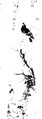 【作品赏析】: 《枯槎鸲鹆图》又名《春雨鸣禽图》,是唐寅水墨花鸟画中传世的精品。 画家以简括而又准确的笔墨抒写出空山雨后的自然小景,创构了一个生动活泼、情趣盎然的艺术境界:劲挺多姿的枝头上栖止著一只八哥,树枝似乎随著八哥的引亢高鸣而应节微动,从而显现了自然界生命律动的和谐之美。一两条细藤与数笔野竹同枯树上的老叶画到一起,增添了空山雨后的幽旷、恬静和清新的气氛。右上角有画家自题的对句诗。“山空寂静人声绝,栖鸟数声春雨余。”诗画相互映发,意趣悠然而生。在画法上属于小写意一路,运腕灵便,以书法入画,以写代描,笔力雄强,造型优美。 全画笔墨疏简精当,行笔挺秀洒脱,形象饶有韵度。既不同于林良、吕纪的“院体”花鸟,也和沈周那种老笔纷披的格调判然有别,具有秀逸爽放、天然无饰的艺术风貌。 从中可以窥见画家在探讨写意画技法和开拓花鸟画新境方面的卓越建树。。  明 唐寅 轴 纸本墨笔 纵121厘米 横26.7厘米 藏上海博物馆 |