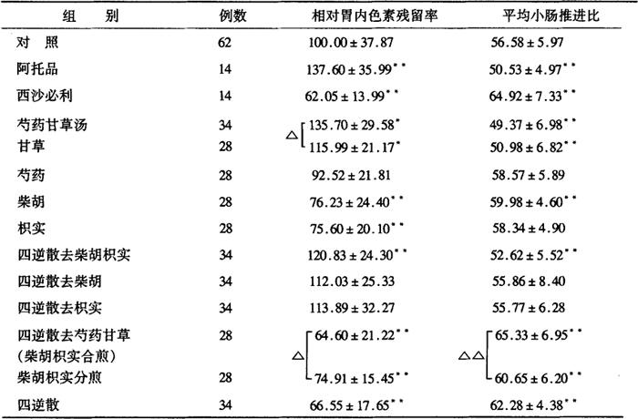 释义 | 枳实 芍药 【中医理论】 枳实、芍药、柴胡、炙甘草研末为散,又名四逆散,首载《伤寒杂病论》。用于热邪传里,阳气郁遏不能外达,四肢厥冷,白芍疏肝,缓急止痛,枳实疏肝理气。诸药合用,可使热厥证得除。 【化学研究】 1.样品制备[1] 柴胡9g,芍药9g,枳实6g,炙甘草4.5g,加工成散剂——四逆散。 1.1 白芍的鉴别 取四逆散颗粒1.5g,加20ml甲醇,超声振荡提取30min,滤过,滤液置水浴上蒸干,残渣加甲醇1ml使溶解,作为供试品溶液。另取芍药苷对照品1mg,加甲醇1ml使溶解,作为对照品溶液。 吸取上述2种溶液各10μl,点于同一含0.5%CMC-Na硅胶G板上,以氯仿-醋酸乙酯-甲醇—甲酸为(40∶5∶10∶0.2)为展开剂,展开,取出,晾干,喷以5%香草醛硫酸溶液,热风吹至斑点清晰。供试品色谱中,在与对照品色谱相同位置上,显相同的蓝紫色斑点。 1.2 枳实的鉴别 取四逆散颗粒1.5g,加20ml甲醇,超声振荡提取30min,滤过,滤液置水浴上蒸干,残渣加甲醇1ml使溶解,作为供试品溶液。另取辛弗林对照品1mg,加甲醇1ml使溶解,作为对照品溶液。 吸取上述2种溶液各10μl,点于同一硅胶G预制板上,以氯仿-丙酮-甲醇-浓氨水为(13∶4∶3∶0.5)为展开剂,展开,展距15cm,取出,晾干,以0.5%的茚三酮乙醇溶液迅速浸润显色,80℃烘约10min。日光检视,供试品色谱中,在与对照品色谱相应位置上,显相同的樱红色斑点。 排脓散也是主要由枳实和芍药组成[2]。排脓散对角叉菜胶足肿的作用特别明显。其有效成分为枳实的柑桔苷和新橙皮苷以及芍药的芍药苷。本文报道这三种成分的分离定量法,结果甚佳。原料生药为枳实、芍药和桔梗。标准物为从日本枳实分离的柑桔苷、橙皮苷和橙皮苷。排脓散的调制,将日本产枳实、芍药和桔梗分别磨粉,以3∶3∶1重量比混合。试液的调制:排脓散约1g,在50mg甲醇中回流抽提30min之后趁热过滤。残渣重新在50ml甲醇中同样处理。合并抽取液,减压浓缩后,从中准确量取10ml作为试液。各种枳实粉碎后,取1g与排脓散同样处理,作为试液。但含橙皮苷的枳实,用吡啶代替甲醇作为抽出溶媒,同相处理,作为试液。定量装置:双波长薄层层析扫描仪9(岛津CS-910)。狭缝幅:1.25×1.25mm。测定法:反射锯齿波扫描法。测定波长:λR=600mμm(芍药苷)。薄层板:预涂布硅胶板60F254(MerckArt.5554)。展开溶媒:CHCL3~MeOH-H2O(65∶35∶10,下层)。标准曲线的制作:配成标准物质2mg/ml的标准溶液,用微量注射器吸取2.5、5.0、10.0、15.0μl标准液在薄层板上点样,三重展开后根据上述条件测定。以所得积分为基础,求得回归直线方程。试液的定量操作:取各溶液1,2,4μl,点在薄层板上,同上操作。所得积分值用于标准曲线方程式,算出试液中含量百分比。重复三次,定时结果取其均值。标准曲线在5~30μg范围内,呈良好直线。在λs=2.0mμmλR=600mμm处可精确检出柑桔苷、新橙皮苷在,λs=230mμm,λR=600mμm处可精确检出芍药苷。各种枳实中,日本产的含有柑桔苷和新橙皮苷,中国产的含有橙皮苷,南朝鲜产的含有柑桔苷和枸桔苷。香港市场的炮制枳实片含柑桔苷和新橙皮苷。 2.芍药苷的定量分析 测定条件的选择:Kromasil-C18反相柱(4mm×4mm),粒度5μm,流动相水-甲醇-冰醋酸(64.5∶35∶0.5);流速0.6ml/min;柱温40℃AUFS。理论塔板数按芍药苷峰计不低于1800。回归方程为Y=56383.57X 4275.56,r=0.9999。表明芍药苷的样量在0.36~3.6μg时,与峰面呈良好的线关系。回收率试验:取四逆散颗粒0.15~0.3g,精密称定,置500m量瓶中,加入对照品溶液4ml(0.32mg/m1),挥尽溶剂。加甲醇40ml,超声振荡提取1h,放冷,加甲醇至刻度,离心30min,转速9000r/min,取上清液作供试品溶液。精密吸取该溶液10μ1,按上述色谱条件测定计算回收率见表9-4-1。 9-4-1 加样回收率测定 样品测定:分别精密吸取对照品溶液和供试品溶液各10μl,依法测定计算芍药苷含量,结果见表9-4-2。 9-4-2 样品中芍药苷含量 【药理研究】[3] 对胃排空及肠推进作用的影响 DDY小鼠34只,雄性,体重25~30g,5周龄,实验前禁食12h。取芍药410g,甘草1.5g,柴胡5.0g,枳实2.0g,粉碎,加去离子水350ml,浸泡30min后煎煮30min,滤过,滤液冷冻干燥至粉末状,溶于20ml去离子水中,以阿托品及西沙必利为阳性对比。将小鼠随机分组,分别经口灌服相应药物,对照组为去离子水,均20ml/kg,15min后灌服2%葡聚糖蓝2000溶液,每只0.4ml。再经30min后颈椎脱臼处死动物,并腹取全部胃肠,自幽门括约肌处取胃,将其内残留色素(葡聚糖蓝2000)充分溶于2ml去离子水中,3500r/min离心15min,取上清玻璃棉滤器过滤,滤液日本日立200-20型分光光度计620nm油吸光度为胃内色素残留量,并求出均值。以对照组均值为100%,均值与其之百分比为相对胃内色素残留率,另分别量取自幽门括约肌至色素最前端及至盲肠距离,以二者之百分比为小肠推进比,并求均值。 结果相对胃内色素残留液66.55±17.65%平均小肠推进比62.28±4.38%。表明四逆散对小鼠胃排空,小肠推进,较对照具有显著性差异(P<0.01)。 【临床应用】 治疗消化不良 李氏[2]等利用四逆散,研究了对功能性消化不良患者(FD)的胃排空及小推进功能的影响。其中FD患者15人,健康对照18人。FD患者停用一切药物1周,与健康对照者均禁食12h后口服蒸馏水20ml,15min后服120%硫酸钡混悬液300ml,以东芝800mA遥控胃肠仪观察并记录钡胃全排控及钡前端至回盲部时间,FD患者连续口服35%柴胡枳实合煎剂20ml,每日3次,共7d,第8d重复以上过程。结果提示四逆散有改善FD患者胃肠输送功能的作用。 枳实芍药散主要