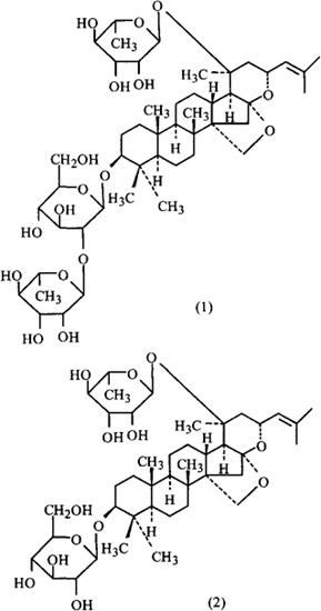 释义 | 枳椇叶 【名称出处】:姚可成《食物本草》 【概况】: 基源 为鼠李科枳椇属植物枳椇和北枳椇的叶。 原植物 枳椇Hovenia acerba Lindl.。北枳椇H.dulcis Thunb. 余项参见“枳椇”条。 。【化学】: 含皂甙(Saponin)A1、A2、B、C1、C2、D(1)、E、F、G(2)和H[1],近年来用碱裂解Saponin D,获得真正的皂甙元是酸枣仁皂甙元(Jujubogenin),并得到另一种皂甙20-O-α-L-Rhamnopyranosyljujubogenin[2],另尚含有水溶性的甜味成分枳椇素(H。dulcin),亦为三萜类皂甙,分解得到森林匙羹藤酸(Gymnemic acid)和Ziziphins[3]。 参考文献 [1] J Chem Soc Perkin Trans I 1981;(7):1923 [2] Chem Pharm Bull 1987;35(6):2574 [3] CA 1989;110:113363d 【药性】: 功效 解酒毒,下死胎。 主治 酒醉,风热感冒,外感腹痛,死胎不下。 ❶ 姚可成《食物本草》:“治死胎不出,用枳椇叶14片,水酒各250ml,煎8分服。” 用法用量 内服:煎汤,9~15g。。 【临床应用】: 单方应用 姚可成《食物本草》:“治死胎不出:枳椇叶14片,水、酒各250ml,煎8分服。” |