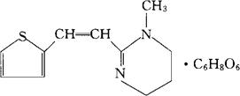 释义 | 枸橼酸噻嘧啶 C11H14N2S·C6H8O6=382.43 CAS-15686-83-6(pyranfel) (E)-1,4,5,6-四氢-1-甲基-2-[2-(2-噻吩基)烯乙基]嘧啶枸橼酸盐(1∶1)。 (E)-1,4,5,6-Tetrahydro-1-methyl-2-[2-(2-thienyl)vinyl]pyrimidine citrate(1∶1). 驱虫药。用于钩虫、蛔虫、蛲虫,亦可用于驱鞭虫等。 驱虫灵,枸橼酸噻吩嘧啶。 Pyrantel Citrate. |