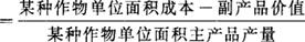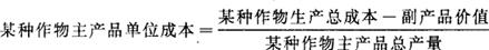 指某种作物生产总成本减去副产品价值再与某种作物主产品总产量的比值。其计算公式为: