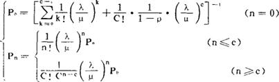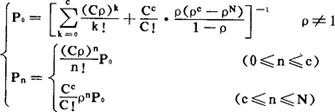模型条件: 除服务机构为多台(C台)并列服务,且平均服务率相同,即μ1=u2=…=μc外,其余条件同模型M/M/1。 系统运行主要指标计算公式: (1)服务强度:  (2)系统中没有顾客和有n个顾客的概率:  (3)系统中队长的期望值: Ls=Lq+Cρ (4)系统中队列长的期望值:  (5)系统中顾客逗留时间的期望值:  (6)系统中顾客排队等候时间期望值:  〔参〕排队模型分类 标准M/M/1模型 系统容量有限制(N)的M/M/C排队模型 模型条件: 系统的容量最大限制为N(≥C),其他条件与标准M/M/C模型相同。 系统运行主要指标计算公式: (1)服务强度:  (2)系统中没有顾客和有n个顾客的概率:  (3)系统中队长的期望值: Ls=Lq+cp(1-PN) (4)系统中队列长的期望值:  (5)系统中顾客逗留时间的期望值:  (6)系统中顾客排队等候时间的期望值:  〔参〕排队模型分类 标准M/M/1排队模型 |