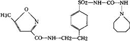 C20H27N5O5S=449.52 CAS-25046-79-1 1-(六氢-1H-吖庚因-1-基)-3-[[对-[2-(5-甲基-3-异噁唑羧基酰胺)乙基]苯基]磺酰]脲。 1-(Hexahydro-1H-azepin-1-yl)-3-[[p-[2-(5-methyl3-isoxazolecarboxamido)ethyl]phenyl]sulfonyl]urea. N-[2-[4-[[[[(六氢-1H-吖庚因-1-基)氨基]-羰基]氨基]-磺酰]苯基]乙基]-5-甲基-3-异噁唑羧酰基胺。 N-[2-[4-[[[[(Hexahydzo-1H-azepim-1-yl)amino]earbonyl]amino]sulfonyl]phenyl]ethyl]-5-methyl3-isoxazolecarboxamide. 降血糖药。 Glisoxepide,BAY B4231,FBB 4231,RP 22410,Glisepin,Glucoban,Glysepin,Pro-diaban. INN,BAN,DCF,USAN.  |