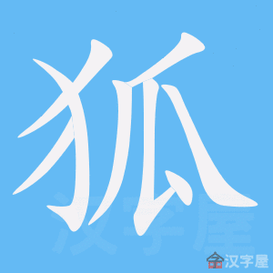 hú 名哺乳动物,形状略似狼,尾巴长,毛赤褐色、黄褐色或灰褐色。性狡猾多疑,遇敌时能放出臭气,乘机逃跑。多栖息于树洞或土穴中,昼伏夜出。主食鼠类、鸟类、昆虫,兼食野果等。通称狐狸。用法说明跟“孤” “弧”不同。