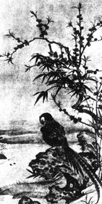 释义 | 桃竹锦鸡图 【作品赏析】: 春天,河水开化了,清溪宁静地流动著,岸边小草也渐渐长高。 溪岸边上有一玲珑秀石,石旁桃花初放,交错著几枝清劲的新竹。两只美丽的锦鸡飞来,一落于石上,弯颈啄咬肩部的羽毛;另一只在石后,正举头观看,似有所闻。溪水远处,画家用淡墨轻染,烟霭蒙蒙,一片寂静的春色。 全画以水墨画花鸟,工整精致。水墨工笔在宋代就有先例,元代进一步发展,出现了许多精品。此幅树、石、羽毛、鲜花及坡岸环境,俱得肖似——如羽的柔滑感、石的坚实感、花的艳嫩感等等。从某种意义上说,它也是一幅高级的古代“素描”,把对象的形、质、量、远近空间都刻画无遗。但它好在并不象现代的素描,因为它有著传统绘画的笔墨韵味,有干、湿、浓、淡的笔法墨法所造成的儒雅秀润的格调。 王渊幼习丹青,曾得到赵孟頫的指导,夏文彦说他的“水墨花鸟竹石,当代绝艺也”,从此作可窥具一斑。 。【作者介绍】:王渊,字若水,号澹轩。 杭州人,生卒年不详,活跃于元代后期。夏文彦说他“幼习丹青,赵文敏公多指教之,故所画皆师古人,无一笔院体。山水师郭熙,花鸟师黄筌,人物师唐人,一一精妙,尤精于水墨花鸟竹石,当代绝艺也。 ”。