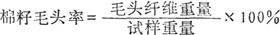 释义 | 棉籽毛头率 指经过轧花后棉籽上残留附著的手扯长度在12毫米以上(不包括12毫米)的成束纤维的重量与棉籽重量的百分比。 对棉籽毛头率规定如下:对锯齿机加工出的棉籽,一、二级为0.4~0.1%,三至五级为0.6~0.1%;皮辊机加工出的棉籽,一、二级为0.4~0.1%,三至五级为0.6~0.1%。由上可以看出,在棉籽毛头率方面,锯齿棉与皮辊棉要求一致。 棉籽毛头形似小辫,或叫小尾巴。 棉籽毛头率计算公式如下: |