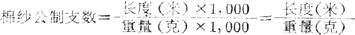 释义 | 棉纱公制支数 指在公制公定回潮率8.5%时,重1,000克棉纱以千米为单位的长度值。 如重1,000克的棉纱,长1千米,就是1支棉纱。表示棉纱粗细程度的指标。 计算公式为: 棉纱愈轻,支数愈高,亦即愈细。 |