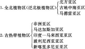 即利用各种植物区系分析方法研究有关地区的植物区系,并把那些植物区系成份的性质和发展历史相似的地区合并,按照相似程度、关系密切程度分成若干等级。 植物现代分布区的形成不仅受现代地理环境的制约,还深受古地理演变、植物进化特点等因素的限制,分区单位越高,此种情况越明显。 分区单位依次是植物区、亚区、地区、分区、小区等。划区标准除含有较高比例的特有种和特有属以外,还存在著特有科。区内根据次要差别分为亚区。地区划分的重要标准是特有属和植物科属的组成特点。分区的特有属比例较低,仍含有一定的特有种。 小区主要根据区系种类组成的相似性进行划分。 植物区和亚区的划分情况,各家学者的意见大同小异,其中塔赫他间的区划系统最为人接受,包括6区、8亚区、37地区。世界植物区和亚区名称如下:  3.新热带植物区 4.好望角植物区 5.澳大利亚植物区 6.南极植物区 |