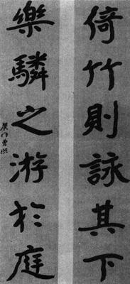 近代·曾熙书。纸本。行书。六言联一则。凡正文十二字,款四字,共十六字。刊于《民国时期书法》(中)。