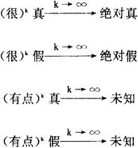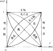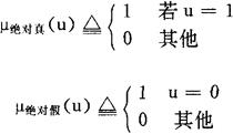 P∧Q(合取)对应 P∨Q(析取)对应 P→Q(蕴涵)对应 =〔(1-P2+q1)∧1,(1-P1+q2)∧1〕 以上的讨论是静态的(在固定的λ∈〔0,1〕程度上讨论)。 结果都是与λ有关的截集。当λ变化时,这些截集也随入变化,因此,逻辑运算的结果是一个随入而变化的具有弹性边界的区间。在上述意义上,我们常常讲,某命题是λ-真的。(无论是初始命题,复合命题还是逻辑演算的结论) 为了刻画自然语言的逻辑关系,在FL中不能象多值逻辑那样,命题的真实程度用〔0,1〕区间上的确定值来描绘。 必须要用模糊集来描绘。换句话说:一个自然语言命题的语言真值是真值论域〔0,1〕上的模糊子集。 为此,L,A,Zadeh给出了基本语言真值的定义;从而创立了语言值逻辑。 基本语言真值true(真)和fa1se(假)定义为 等式的左端是模糊集“真”上u命题的隶属度, 等式的右端是命题u在真值论域上的语言真值。 我们可以把它叙述为命题u在“真”模糊集上的语言真值就是u属于该模糊集上的隶属度。而同一个命题u在“假”模糊集上的语言真值就是用1减去它在“真”模糊集上的语言真值。 此外,同样的方法可以给出另外三个: 它们分别叙述为: 命题u只有当它是绝对真(绝对假)时,给它相应的语言真值为1,否则均为0。最后一个式子可以理解为,对任一命题u讲它是“未知的”总是允许的,对这种的说法,我们赋予它的语言真值是1。 当对基本语言真值加以修饰时,如“很”,“有点”“相当”等,语言真值会有变化: 设τ是某语言真值,很“τ″,有点“τ”可定义如下: 上式可叙述为,对语言真值只有τ的命题讲它很τ其语言真值反而下降了。(∵(μτ(u))2<μτ(u))相反,讲它有点τ则上升了。 数学化地使用修饰词,可有如下的结果: 这与人们直观的理解与表述是相吻合的。 如上数量化的表述可隶属度——真值论域=继平面上的图形刻画。 |