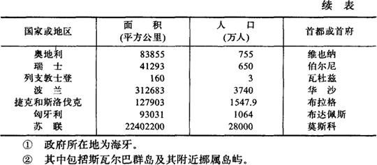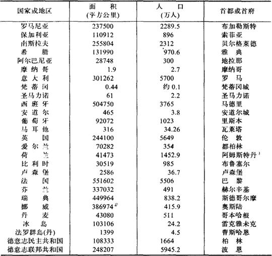 释义 欧洲各国家和地区面积、人口、首都(或首府)表