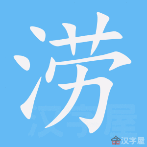 字源解说 劳,既是声旁也是形旁,表示忧烦。涝,篆文 = (积水)+ (劳,忧烦),造字本义:大雨造成过度积水,影响生计。久晴无雨为“旱”* ;久雨积水为“涝”。 附 文言版《説文解字》:澇,水。出扶風鄠,北入渭。从水勞聲。 附 白话版《说文解字》:涝,河川。源出扶风鄠,向北汇入渭河。字形采用“水”作边旁,“劳”是声旁。