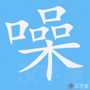 “喿”是“噪”的本字。喿,金文=(三个口,表示众鸟鸣叫)+(木,树),像每根树枝上都有鸟儿在鸣叫。篆文承续金文字形。当“喿”作为单纯字件后,楷书在“喿”基础上再加“口”另造“噪”代替。造字本义:栖集在树上的鸟群喧闹鸣叫。古代曾以“譟”区别于“噪”,表示话多音高而扰人,后来“譟”由“噪”代替。众鸟共栖为“集”;众鸟同鸣为“噪”;众鸟齐飞为“霍”。