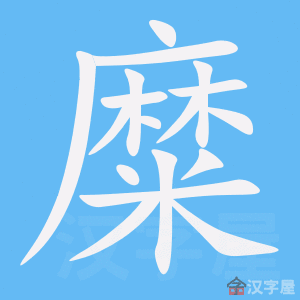字源解说 米,既是声旁也是形旁,表示黍米。糜,篆文 = (麻,“磨”的省略)+ (米,黍米),表示磨碎黍米。造字本义:将黍米磨碎或捣烂。 附 文言版《説文解字》:糜,糝也。从米,麻聲。 附 白话版《说文解字》:糜,糁和。字形采用“米”作边旁,“麻”是声旁。 引申线索